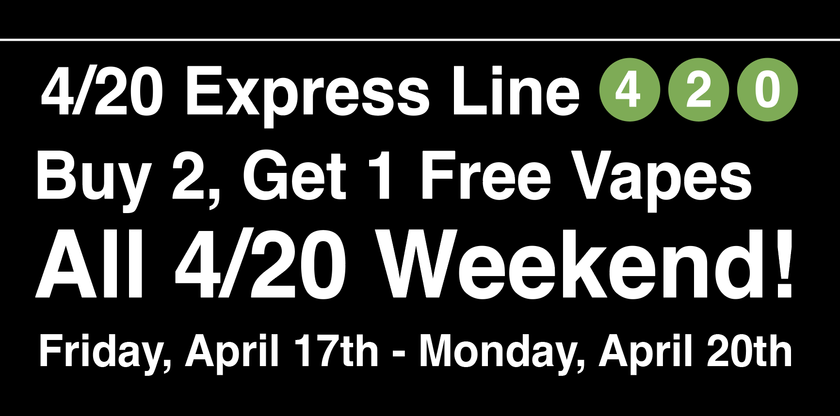 Home / Specials / B2G1 Free Vapes – 4/20 Weekend Deals